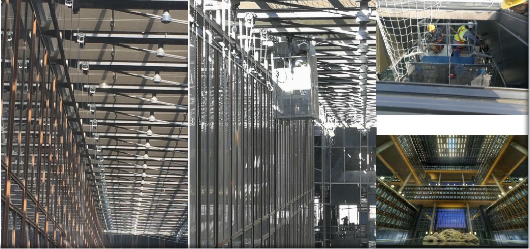 此機(jī)型主要由電動行走機(jī)構(gòu)、鋁合金或鋼結(jié)構(gòu)滑梯等組成。用于清洗內(nèi)外弧形、水平、傾斜的玻璃天幕等。