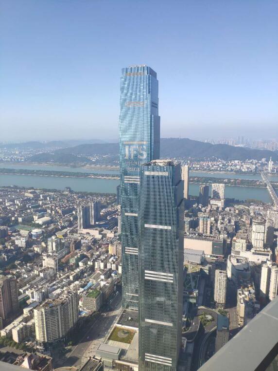 該項(xiàng)目所配備的屋面軌道式擦窗機(jī)工作高度460米,采用立柱升降式機(jī)構(gòu),擦窗機(jī)卷揚(yáng)機(jī)構(gòu)為特殊定制。擦窗機(jī)在停機(jī)時(shí)可實(shí)現(xiàn)隱藏效果。